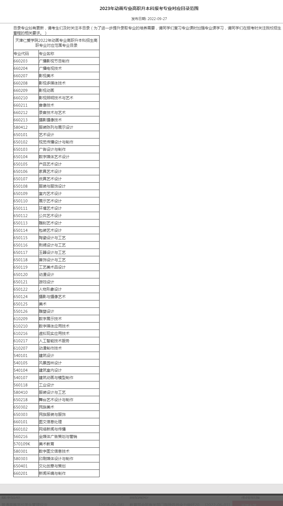 【导语】天津仁爱学院发布相关动画专业高职升本科报考专业对应目录范围公告,说明2023年天津专升本院校已确定有天津仁爱学院,公告具体内容,我们一起来看看。