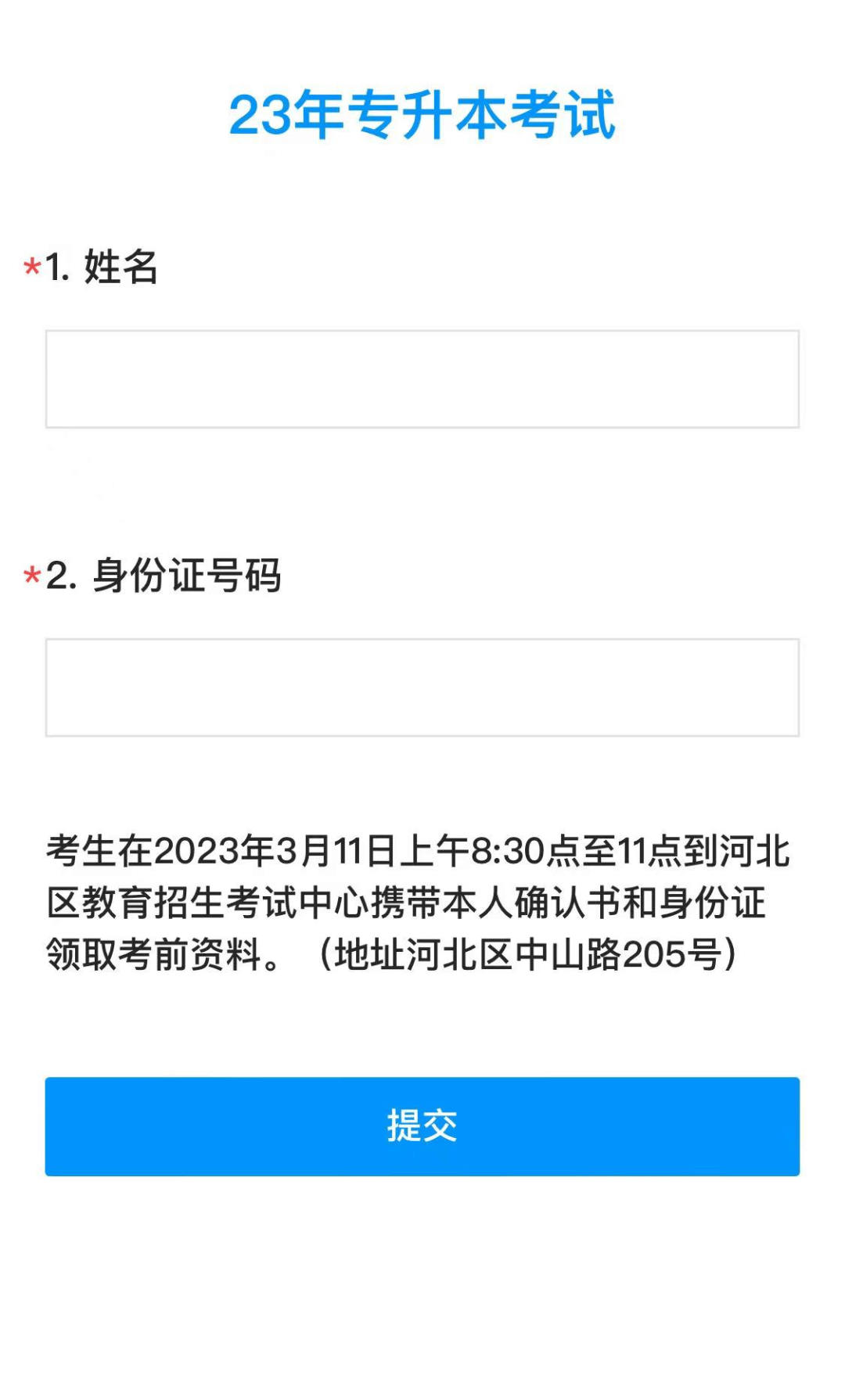 2023年河北区报考专升本考试考生问卷调查及领取条形码的通知