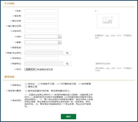 学校采用线上审核方式,进行考生报名信息确认,所有参加专业课考试的考生(不含退役大学生士兵),按如下要求在报名第一项“个人信息中”,上传附件,具体要求如下: