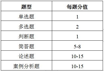 3.考试题型包括单项选择题、多项选择题、判断题、简答题、论述题、案例分析题等。